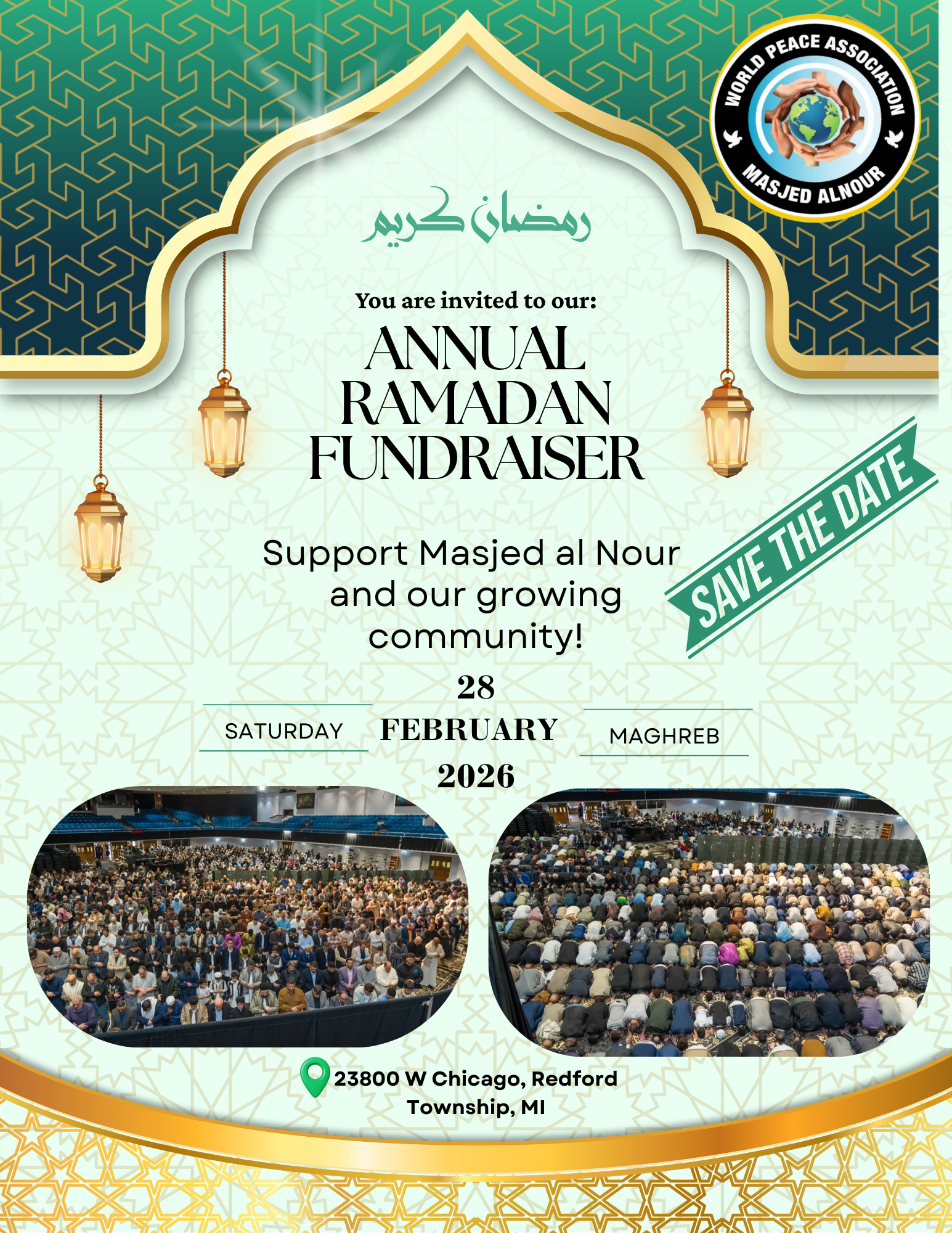 You are invited to our Annual Ramadan Fundraiser in support of Masjed Al Nour and our growing community.