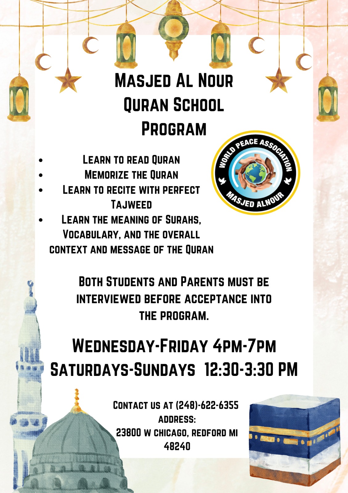 Masjed AlNour is accepting donations via Zelle to wpo.admn@gmail.com