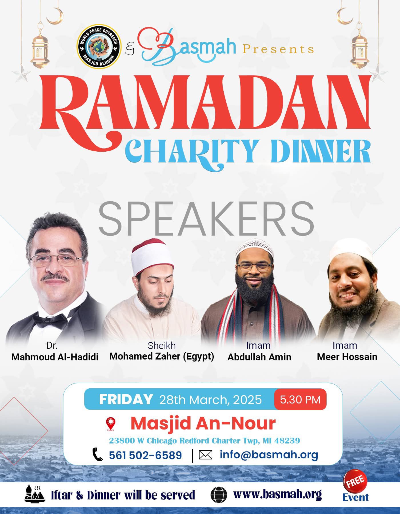 Join us for a special night with Basmah. Beautiful Quran recitation by Shiekh Mohamed Zaher (Egypt) followed by Iftar & Dinner!